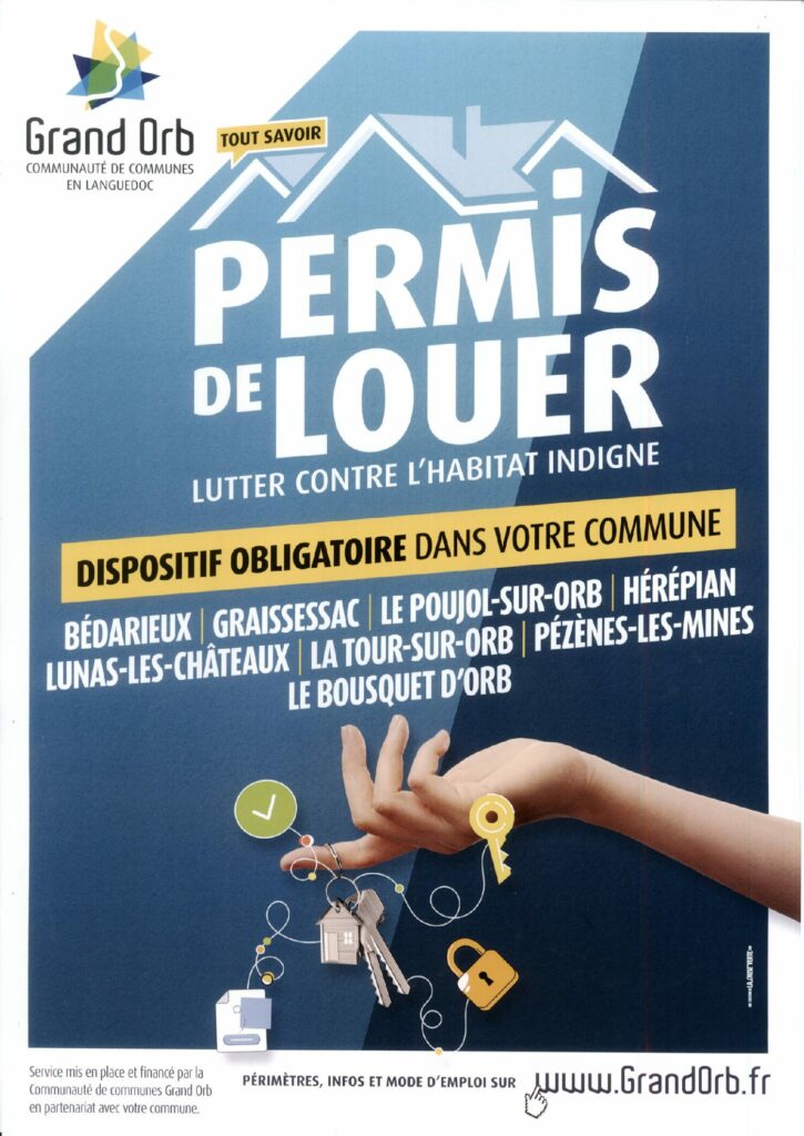 A partir du 1er janvier 2026, la commune de Pézènes les Mines intègrera le périmètre du « Permis de louer » déployé par la communauté de communes Grand Orb Retrouvez ici la Plaquette d’information Contactez la mairie pour plus d’informations